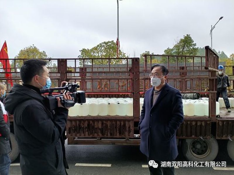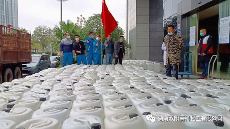 在做好自身疫情防控的同时,开足马力,满负荷生产消杀用双氧水。公司在完成怀化市疫情防控指挥部第一批600吨生产任务后,又陆续配制了几百吨投放市场,并为怀化市、洪江区两级政府捐赠了消杀用双氧水15吨,用于政府及政府部门公共环境消毒杀菌,全力抗击疫情蔓延。
