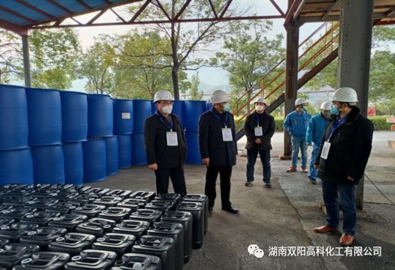 在公司生产现场,双阳高科党总支书记、总经理秦加美向王福初局长一行详细介绍了公司在疫情防控期间,贯彻落实中央和各级疫情防控指挥部的指示精神,在做好自身的疫情防控和生产安全的同时,开足马力,加班加点生产消杀用双氧水,圆满完成了怀化市新型冠状肺炎病毒疫情防控指挥部交给的任务,并为洪江区捐赠5吨消杀用双氧水,用于洪江区辖区内公共环境消毒杀菌。